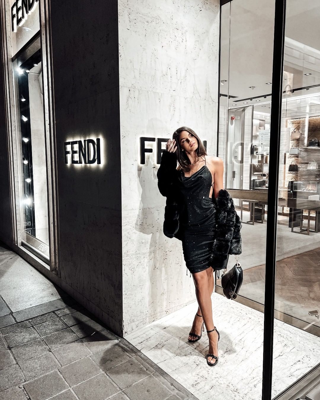 Abigail - přiléhavé třpytivé šaty v černém odstínu se záhyby