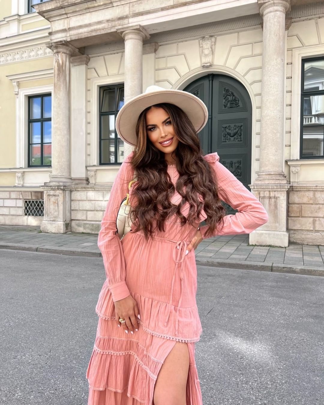 Arizona - působivé maxi šaty v boho stylu v růžovém odstínu Instagram