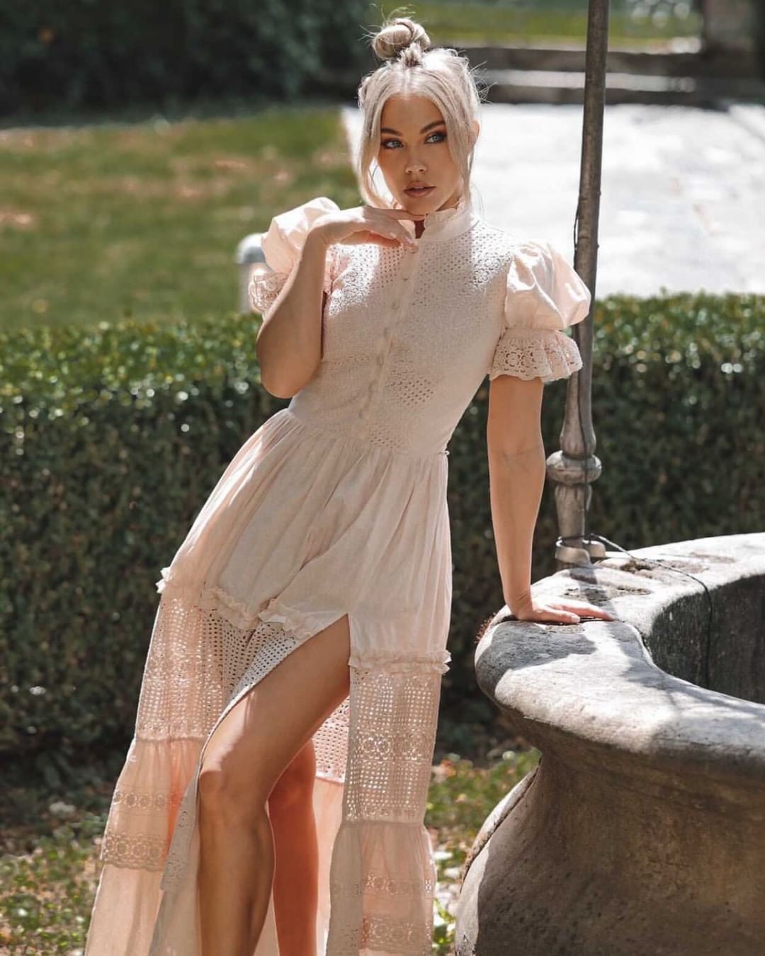 Šaty jsou jedinečné, téměř pohádkové, osobně si je spojuji s viktoriánskou érou, samozřejmě s plusem. Krásná krajka a perfektně umístěné buffety. Délka 170 cm je perfektní. V podstatě s větším poprsím doporučuji vzít o velikost větší nebo zvolit jiný model.
