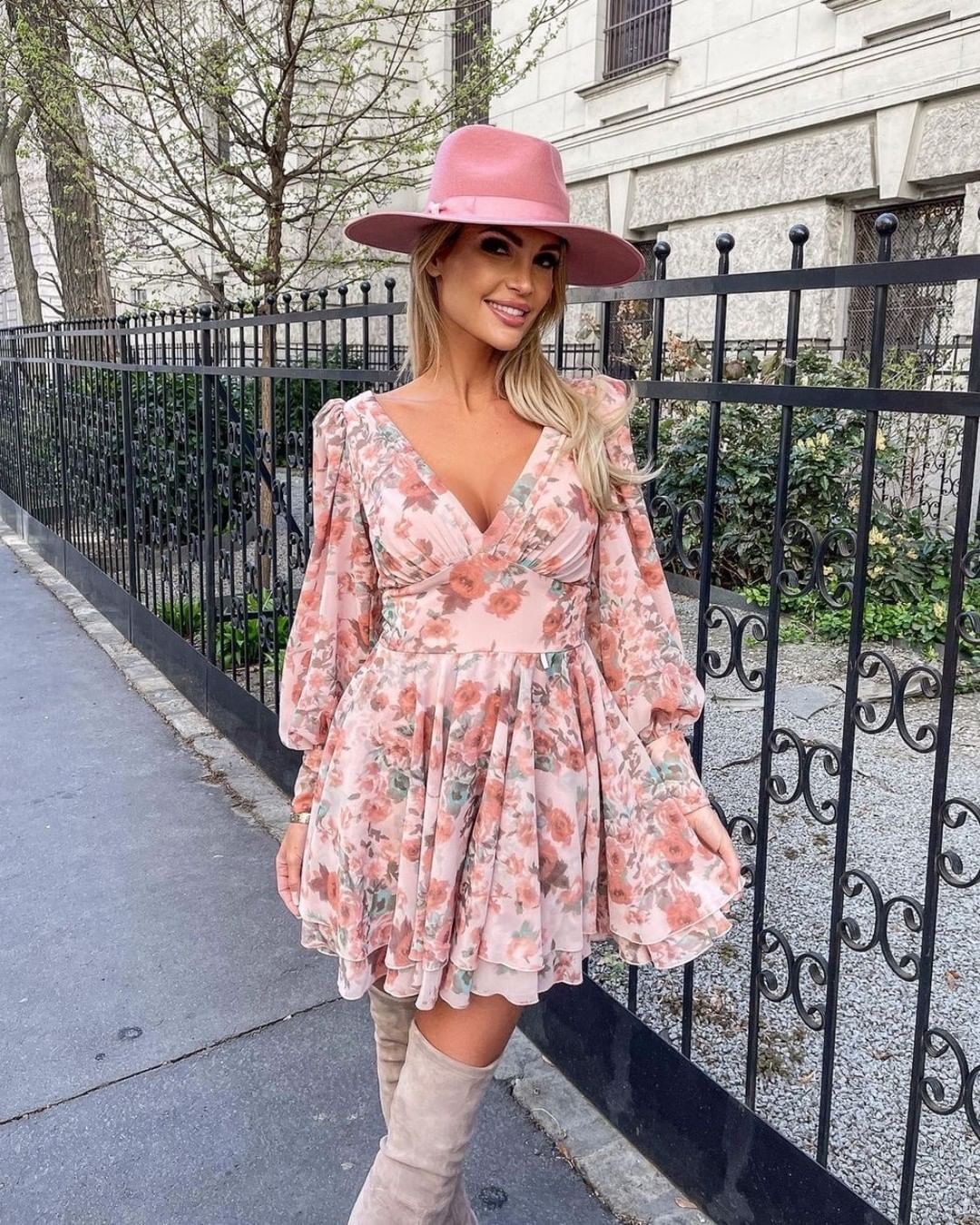 Laila - minišaty v odstínu špinavě růžové s květinovým potiskem