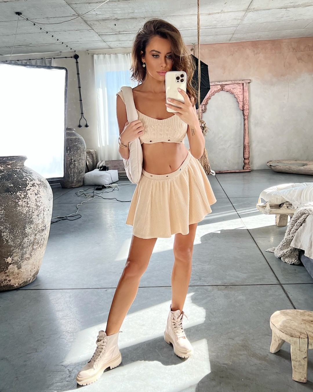 Lori Beige - pletené šaty s ramínky Instagram
