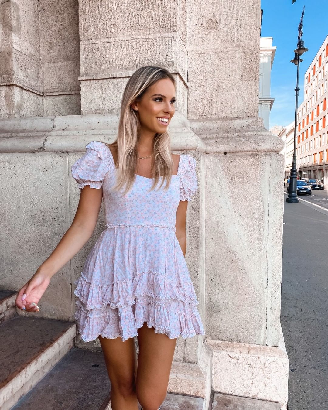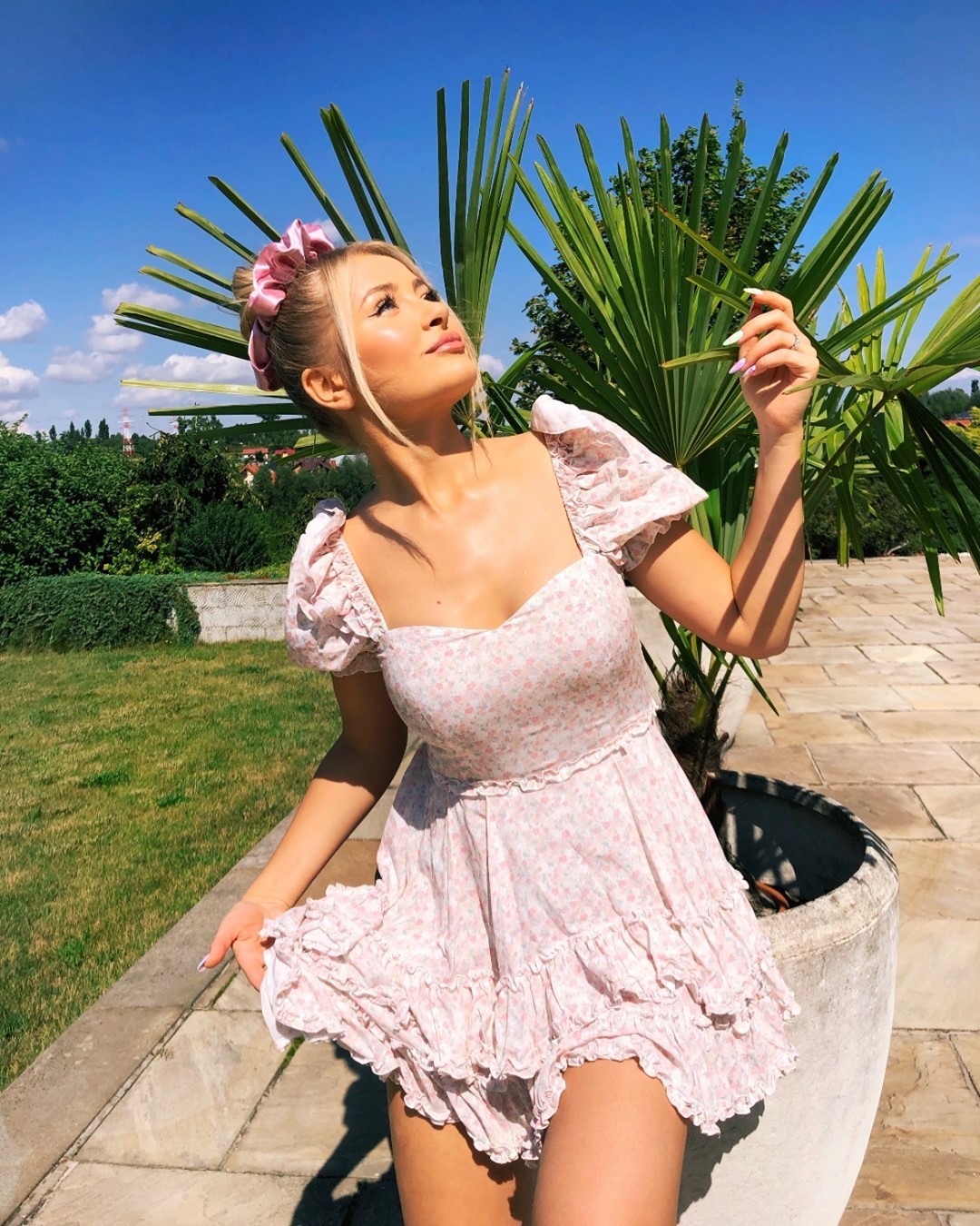 Mini šaty s malým květinovým potiskem. Drobné jsou i volánky a všechny detaily šatů. Ve velmi romantickém stylu, dívčí a skromné. Šaty Merla jsou lehkou nabídkou pro letní dny plné pohody, slunce a dobrodružství. Pohodlné, vizuálně pozitivně vnímané. Boho šaty takové jsou, máme je rádi, můžeme je doplnit gumičkou do vlasů v podobném trendu nebo kapela . Spoustu mini v této atmosféře v obchodě Lou najdete v společenských šatech a koktejlový večírek .