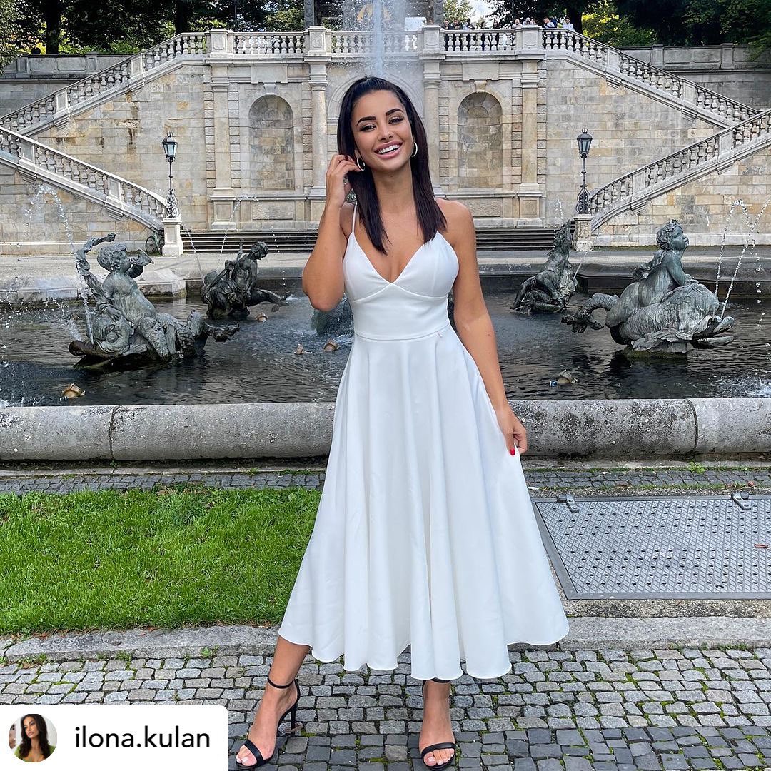 Ophelia Ecru - ecru splývavé midi šaty Instagram