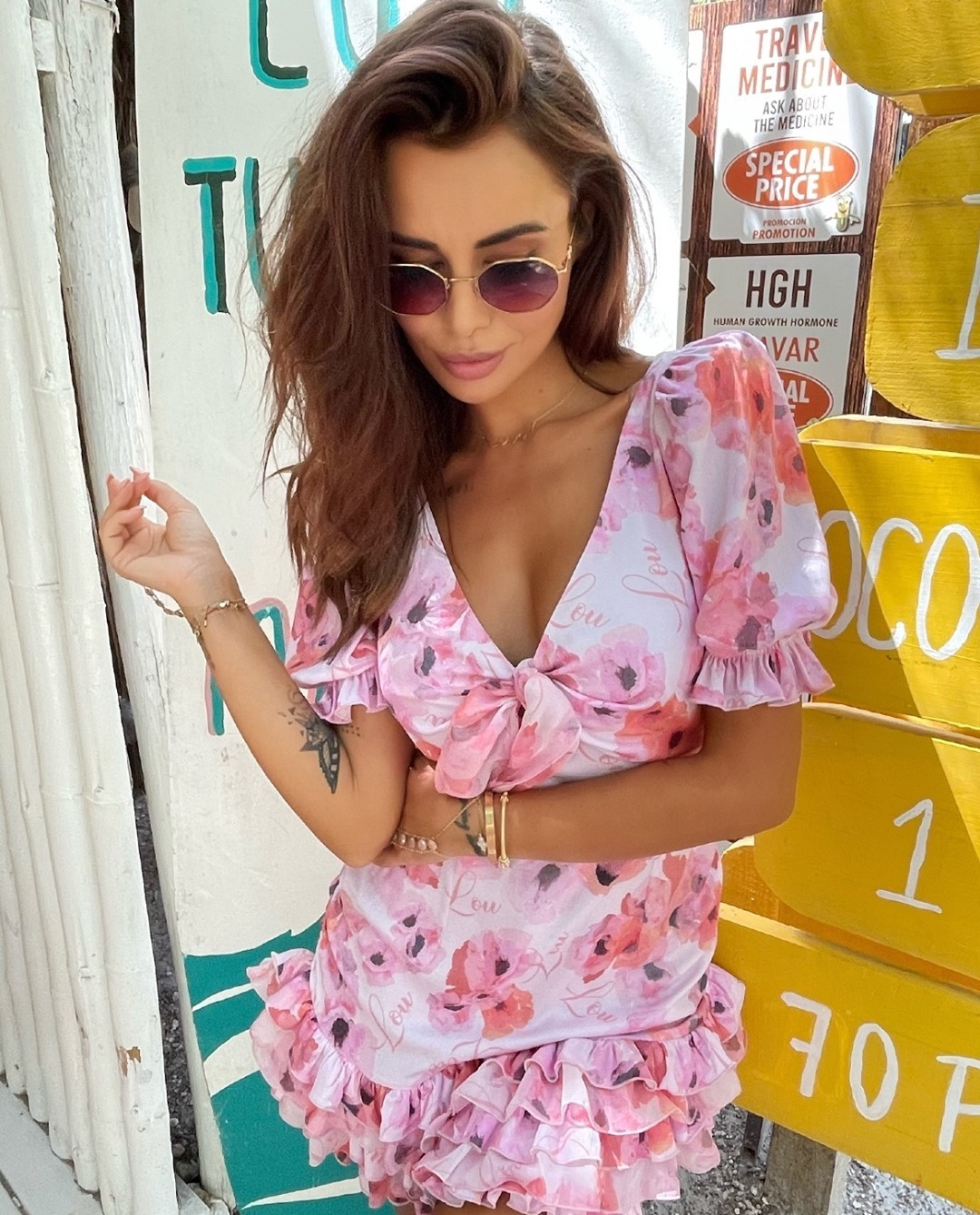Rossa - růžové šaty s volánky a krátkým rukávem