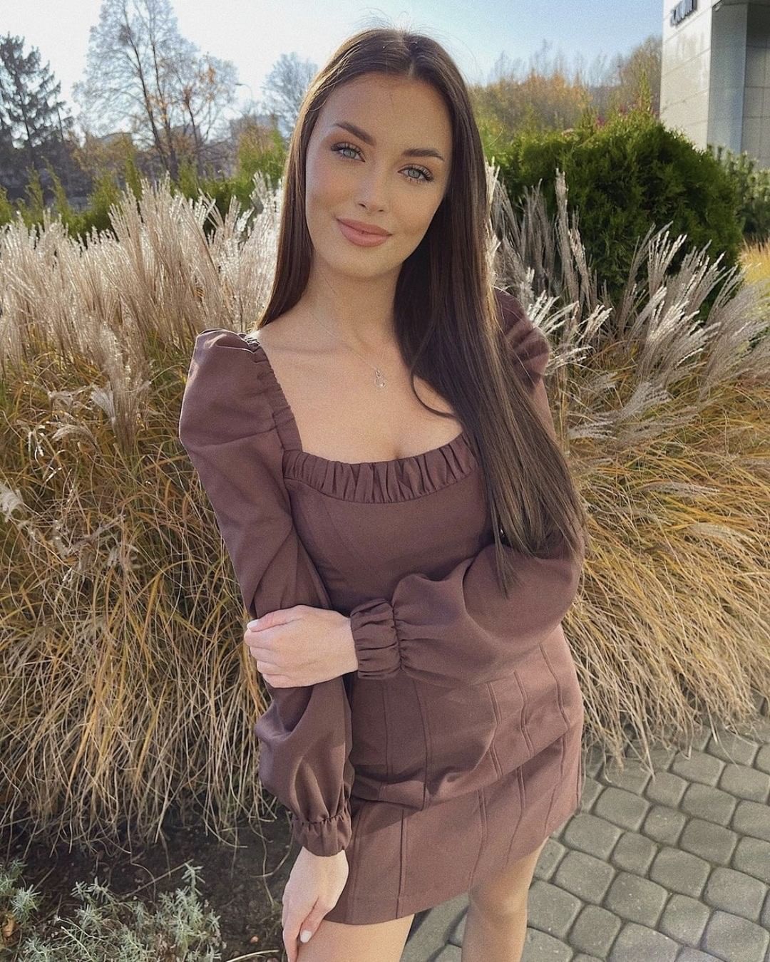 Šaty jsou jedinečné a krásně odhalují výstřih. Vlastním model v čokoládové barvě. Objednávám šaty velikosti XS nebo S, mé míry se pohybují mezi oběma velikostmi. Číslo S přiléhá k pasu, ale neobepíná ho. Šaty jsou mírně elastické, takže se velmi pěkně přizpůsobí tvaru postavy.
